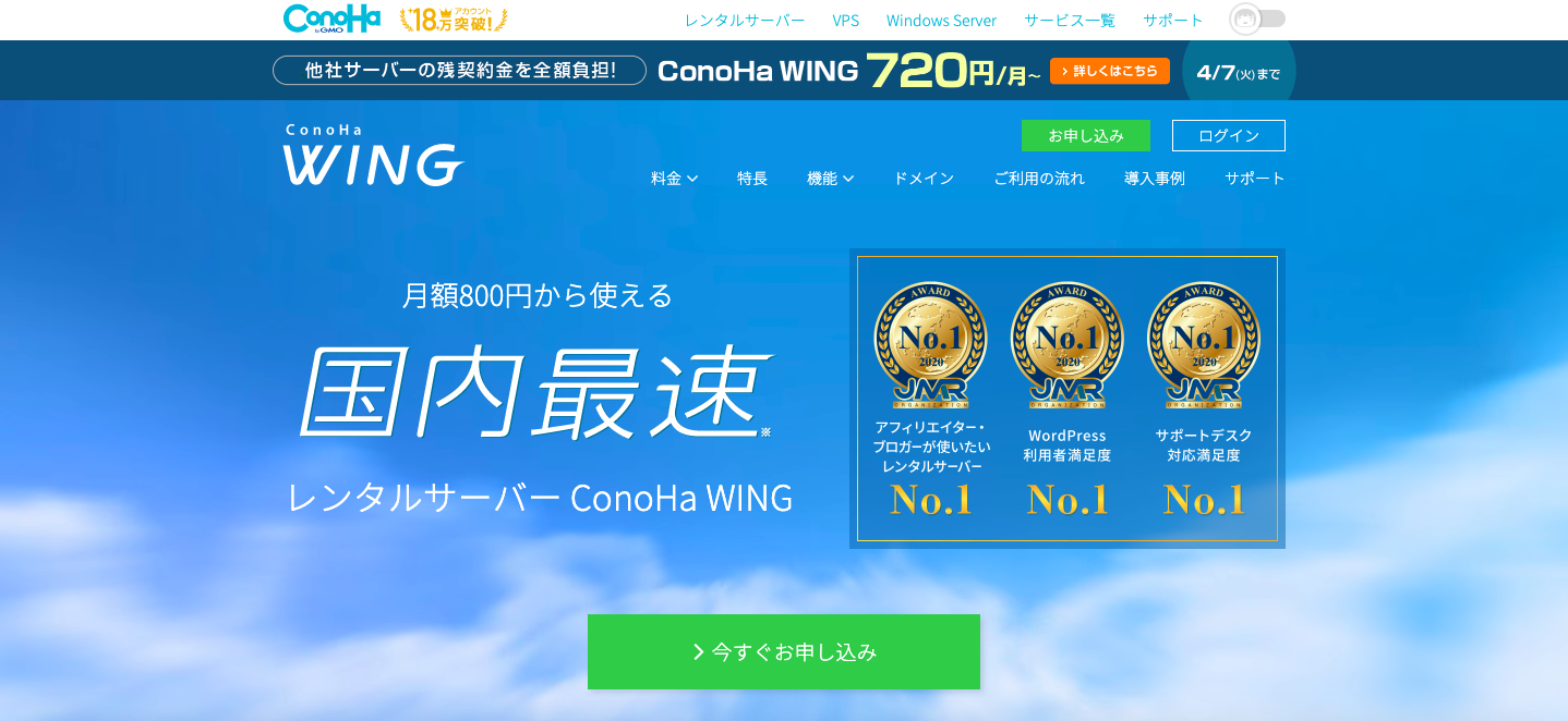 そのレンタルサーバーを契約するならConoHa WINGがおすすめだよ。